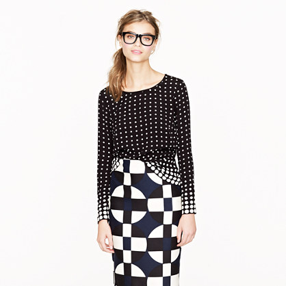 i like this: mix of pattern in this Jcrew optic dot top with graphic print pencil skirt look