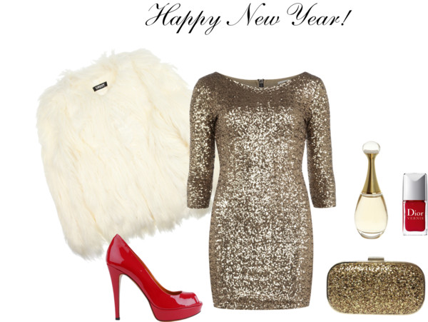 Dorothy Perkins long sleeve cocktail dress / DKNY faux fur jacket / Gucci platform high heels/ Anya Hindmarch gold handbag/ Fragrance / Christian Dior nail lacquer