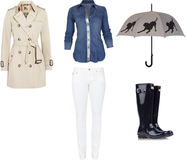 Rainy day staples: trench + rain boots