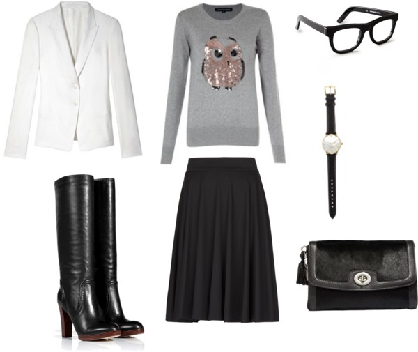 Mango flare skirt / KORS Michael Kors platform boots / RetroSuperFuture clear eyeglass / kate spade new york