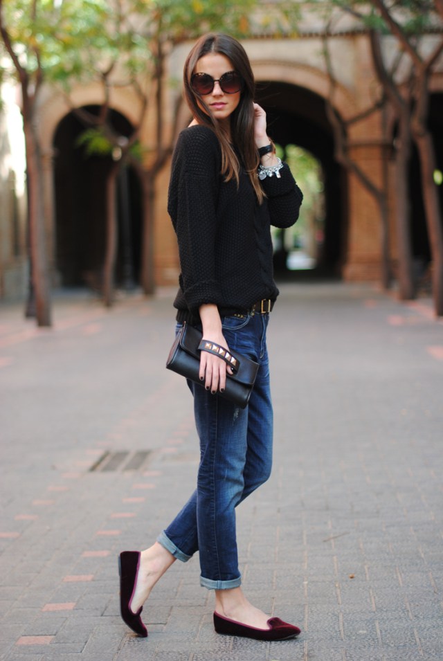 I’d work this: layered look – shrunken sweater, white button-down + cropped trousers and pointy toe flats